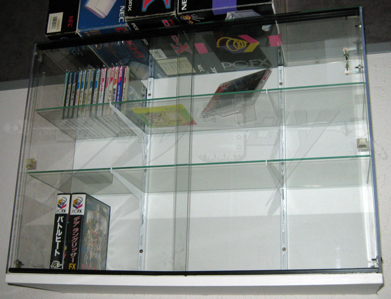 Par ailleurs, même s'ils ne sont pas nombreux, j'ai tout de même réservé le dernier étage pour la ludothèque de la PC-FX puisque le format des boitiers CD se rapproche de celui des AES de la Neo-Geo (un choix incompréhensible de la part de NEC pour le coup…). Il n'y aura de ce fait qu'une seule vitrine murale consacrée à l'univers de la "Reine des Shmups", sur laquelle seront fièrement posées les boites des machines… Et vous me direz, c'est déjà pas si mal !